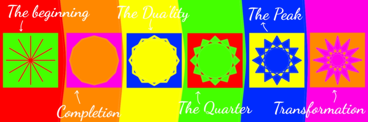 But my 6/72 interpretation of Astrology wasn’t complete. All I had was fixed natal charts. Then another defining moment, another inspiration. I came up with the idea of connecting the houses for each Ascendant. I am a Scorpio Ascendant, so I started with that, and a beautiful 12 pointed star with a narrow circle in the middle emerged in what we call a regular star polygon or a Dodecagram in Geometry. I did this for all 12 Ascendants and that is when I realized something special. I saw that each star was formed by 2 Ascendants. Aries and Libra, Taurus and Pisces, Gemini and Aquarius, Cancer and Capricorn, Leo and Sagittarius, Virgo and Scorpio, each couple as I like to call them has a unique star that forms when you connect the houses  and they were 6 stars supporting the 6 year transit of each house.