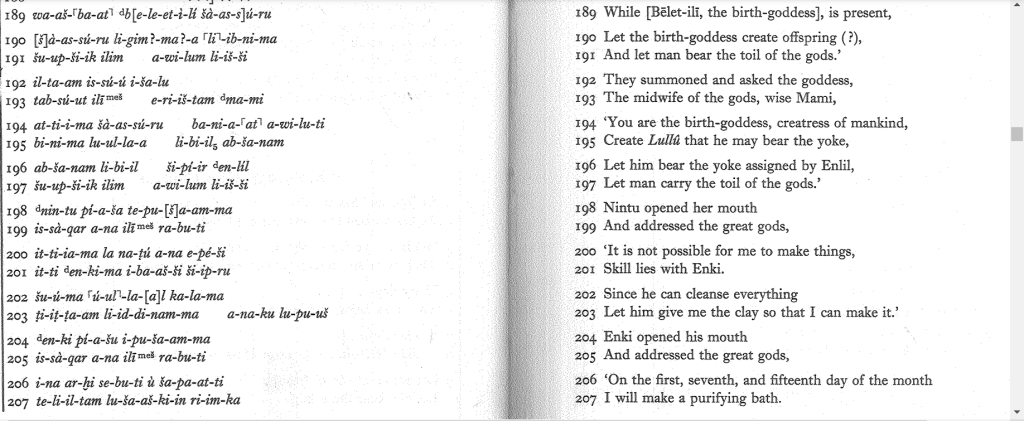 Atrahasis – Tablet 1 – column 2 – line 189 – 241 (Note – some of the tablets were damaged)