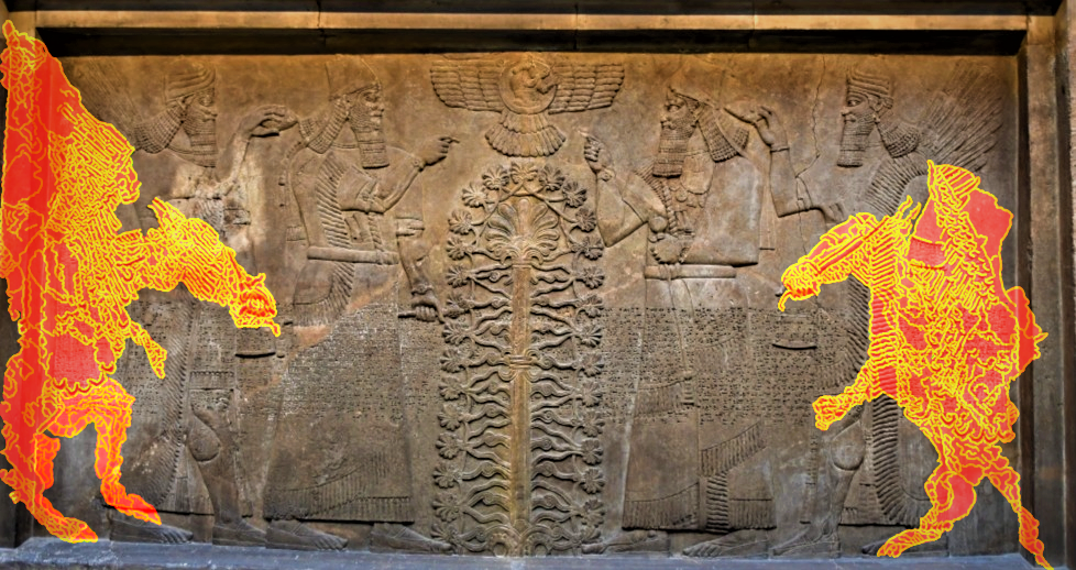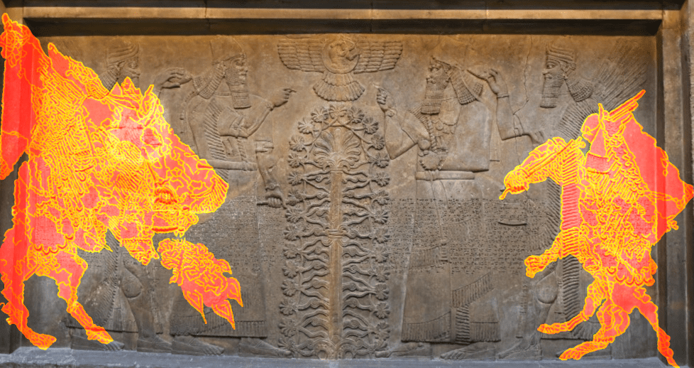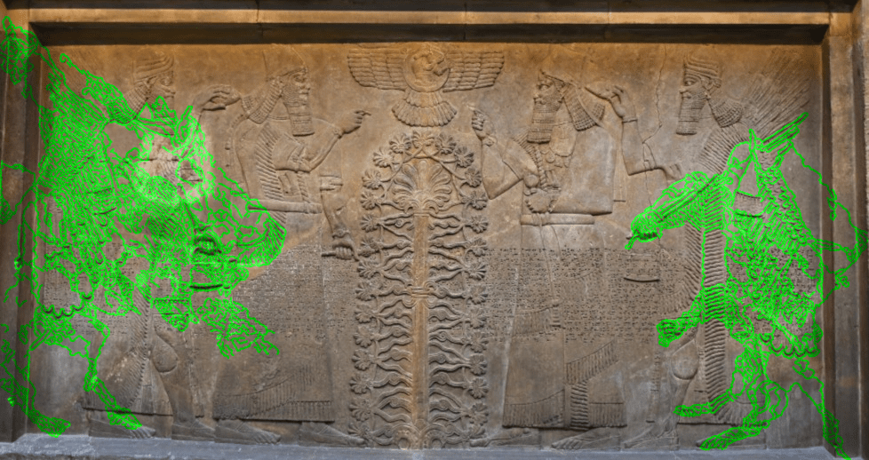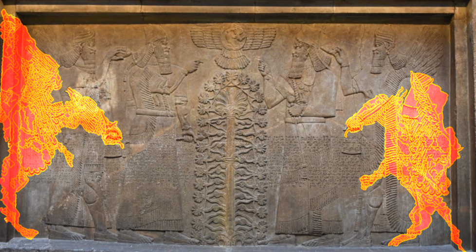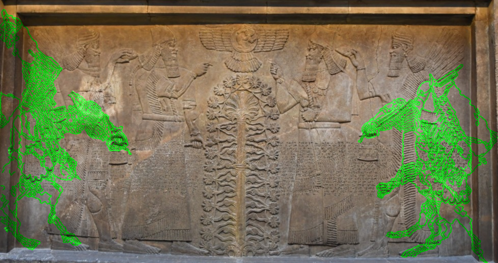 The easiest way to spot one of the dragons without the outline is the dragon on the right. If you zoom in to his face, you could easily make out, it is a dragon.