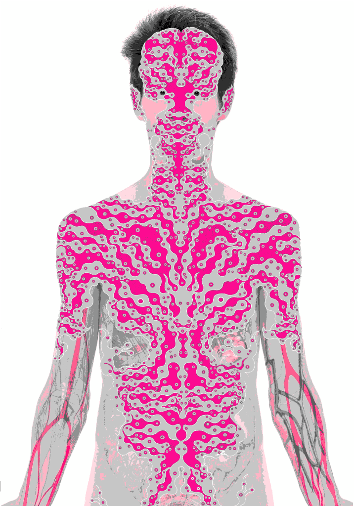 Human anatomy overlaid with golden rectangle to show the symmetry of the outlined dragonization.